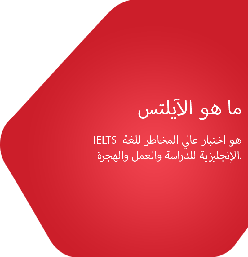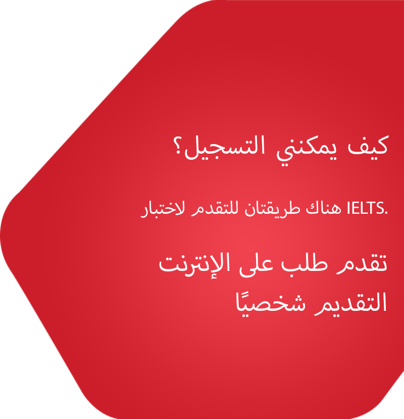 يتكون اختبار IELTS من أربعة أقسام. يتم دائما أخذ الثلاثة أقسام - الاستماع والقراءة والكتابة - في نفس اليوم . بالنسبة لقسم المحادثة اما ان يكون في نفس اليوم أو يستغرق ما يصل إلى سبعة أيام قبل أو بعد الاقسام الآخرى للإختبار ، اعتمادا على مركز الاختبار الخاص بك. يطبق اختبار IELTS إجراءات أمنية بيومترية متطورة تحمي المرشحين والمؤسسات من محاولات الغش. سوف تمر بالعمليات الموضحة أدناه عند التسجيل في يوم الاختبار.