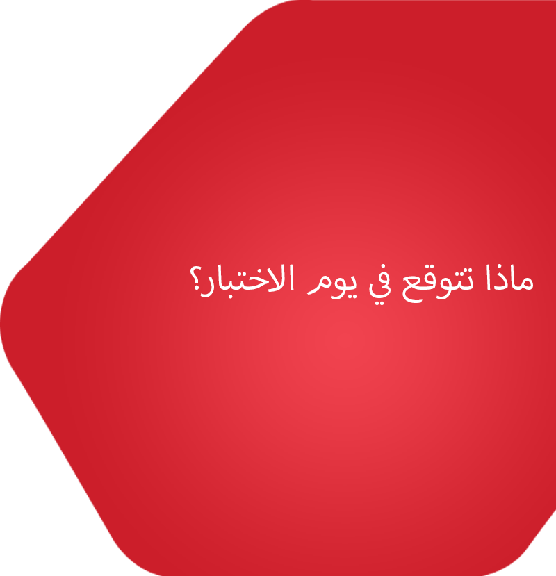 في يوم الاختبار ، سيتحقق أحد الموظفين من هويتك (ID). يجب أن تكون بطاقة هويتك هي نفس بطاقة الهوية التي استخدمتها عند حجز الاختبار. يجب أيضا أن تكون أصلية (وليست نسخة مصورة) وصالحة (غير منتهية الصلاحية) وتتضمن صورة واضحة لنفسك.