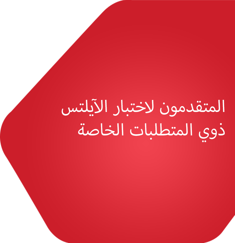 من أجل ضمان تقييم القدرة اللغوية لجميع المتقدمين للاختبار بشكل عادل وموضوعي، يقدم اختبار IELTS خدمة شاملة للمتقدمين للاختبار الذين لديهم متطلبات خاصة، بما في ذلك صعوبات التعلم المحددة، وصعوبات السمع والصعوبات البصرية، أو الحالات الطبية أو تغذية الرضع.